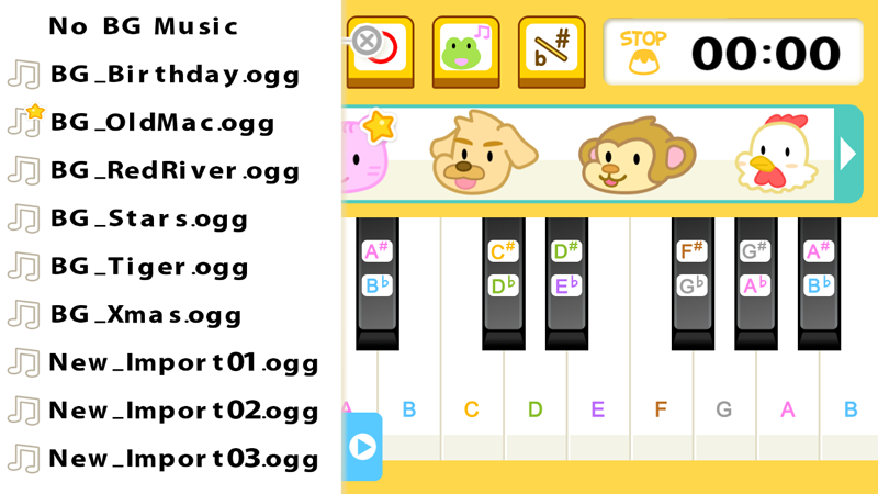 軟件內附六首耳熟能詳的伴奏音樂,讓小朋友可以在熟識的兒歌上進行創作。