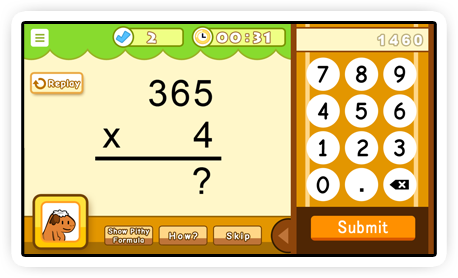 Various games help children to reinforce the multiplication times table as well as division skills in a funny way. At the same time, games attract children interests and encourage them to practise the techniques learnt in different ways.