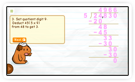 Multiplication Trainer and Division Trainer are designed specifically for children to master Times Table through speed listening, practise multiplication and division skills via funny reinforcement games, step demonstrator and customised drilling methods.